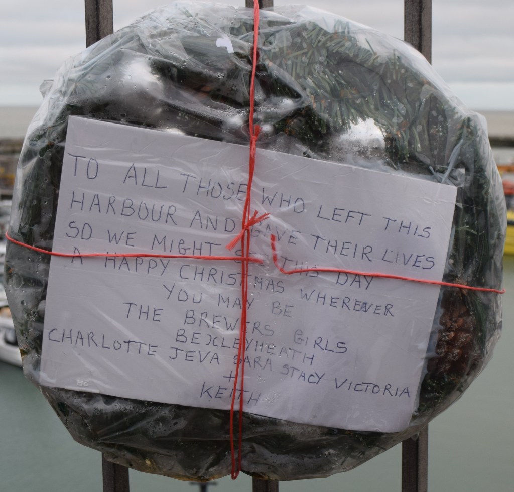 It happens less and less, but people often lay memoriam wreathes nearby- in honour of the war dead; this Christmas, somebody attached one to the clifftop railings just a few yards down from where Addington Street turns onto the esplanade. It reads: ‘To all those who left this harbour and gave their lives, So we might see this day’.